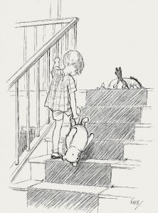 For reasons unknown I’d been given a pillow from the ward to carry down to the theatre with me and that felt a bit odd too.  I asked the nurse why I’d been given it, and she said “something” in reply, but deciphering failed and we mutually decided to let it go.  Off I went with my pillow, feeling rather like an older version of Christopher Robin going off to bed.